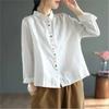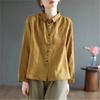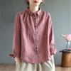Johnature Damen Stickerei Blumen Hemden Oberteile Einfarbig Frühling Blusen Umlegekragen Locker Damenhemden