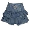 Jeansrock mit doppelter Rüsche und hoher Taille, kurz, blendfrei, dünn, A-Linie, Kuchenrock, Y2K-Mode, süß, sexy, Frühling und Sommer