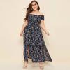 Women Plus Size Plus Off Shoulder Shirred Bodice Split Thigh Ditsy Floral Dress