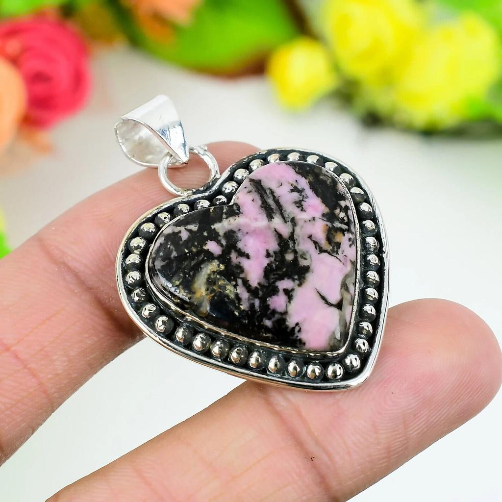 Rhodonit Anhänger Edelstein Handgefertigt 925 Sterlingsilber Schöner Anhänger