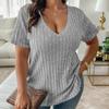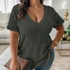 Neue Sommer Plus Größe Frauen T-shirt Casual V-ausschnitt Lose Kurzarm Strick Bluse Weibliche Solide Pit Streifen Büro Dame Shirts Tops 24124