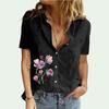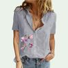 Damenmode Reverskragen T-Shirt Sommer&Herbst Casual Print Kurzarm T-Shirt Top Weibliche Print Bluse Baumwolle Leinen Cardigan T-Shirt
