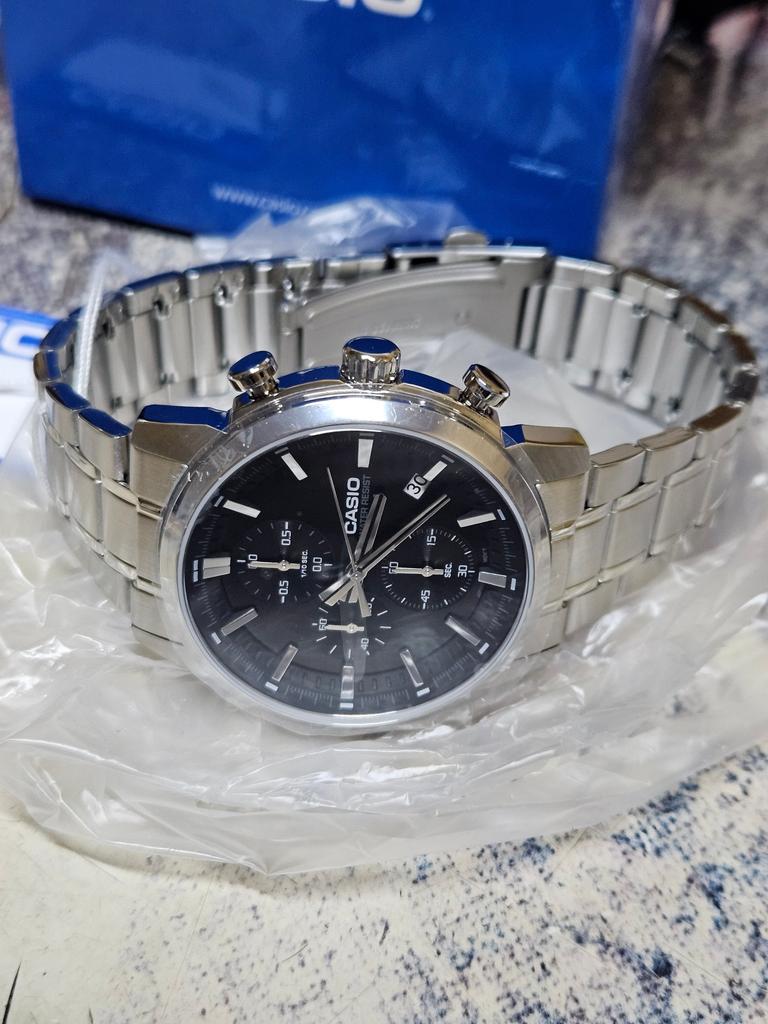 Casio Standard Analog Chronograph Edelstahl Schwarzes Zifferblatt Quarz MTP-E510D-1A1V Herrenuhr