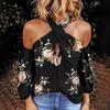 Sommer-Frauen-reizvolles schulterfreies Blumendruck-Halter-rückenfreies loses T-Shirt
