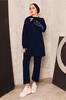 Damen Hijab Set mit langer Tunika und Hose, Perlen- und Reißverschlussdetails