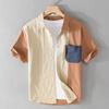 Sommerhemden für Herren Jugend Streetwear Lässige Herrenoberteile Reine Baumwolle Kurzarmhemd Koreanische Neue Mode Stitching-Hemd mit Tasche