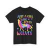 Nur ein Mädchen liebt Wölfe 3D-Druck Damen T-Shirt Kurzarm O-Ausschnitt Locker Damen T-Shirt Damen T-Shirt Tops Camisetas Mujer