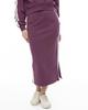 Damenanzug bestehend aus einem Kapuzenpullover mit Kapuze und einem gerade geschnittenen Rock mit Schlitz hinten, hergestellt aus natürlichen Materialien.
