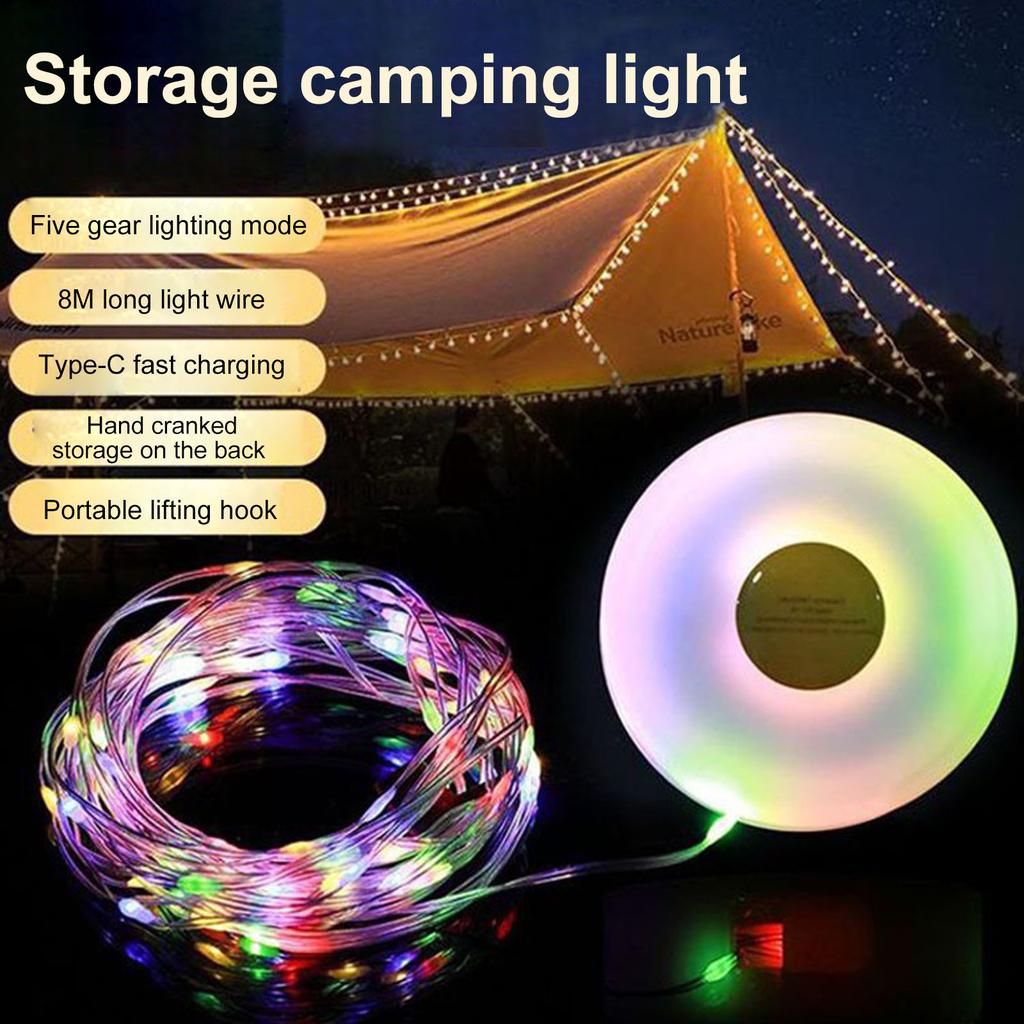 LED-Campingleuchte für den Außenbereich mit Hakenzelt-Ambiente-Lichterkette (8m) Tragbares wiederaufladbares Camp