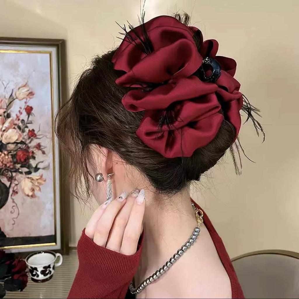 Große Haarklammer aus Wintersamt, mehrschichtige Haarnadel mit Schleife, Haarkrabbe für Frauen, schwarze, weinrote, temperamentvolle Kopfbedeckung