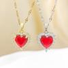 S925 Silber "Liebe" Herzform Natürliche Granat Edelstein Anhänger Halskette Edlen Schmuck für Dame Frau Tochter Geschenk Täglichen Tragen