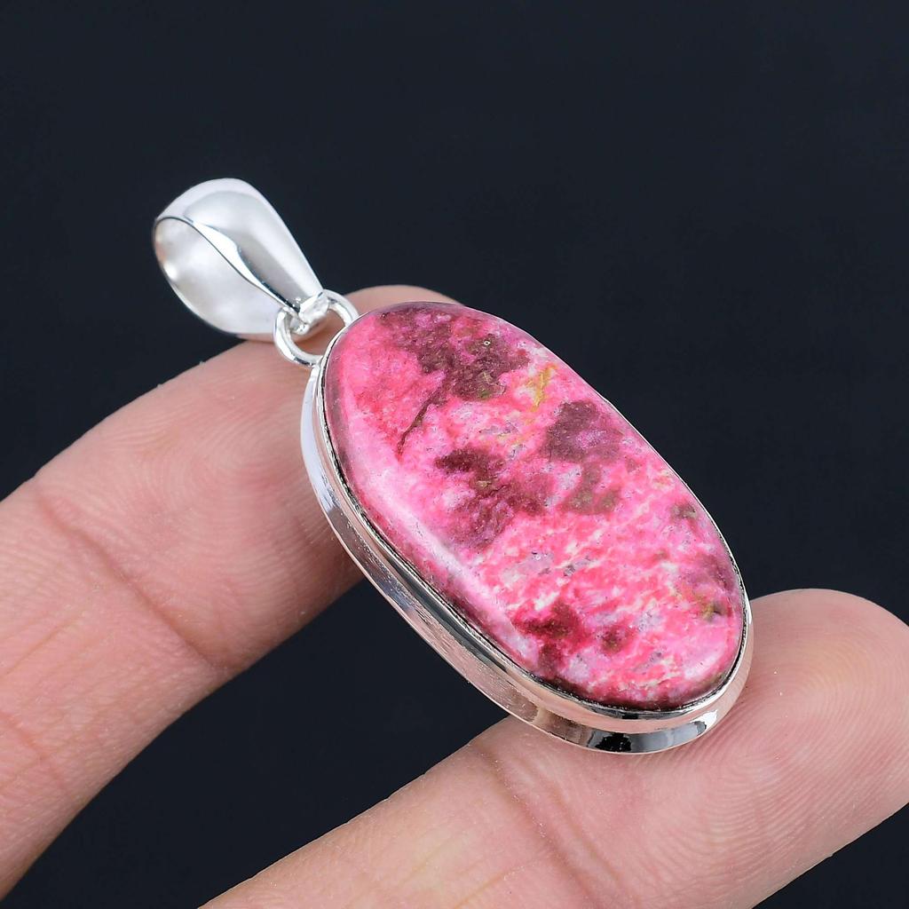 Thulit Edelstein Anhänger Massiv 925 Sterling Silber Anhänger Schmuck Geschenk für Unisex