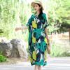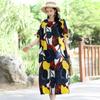 Blumendruck Kleid Damen Sommer Casual O-Ausschnitt Kurzarm Langes Kleid Böhmisches Strand Sommerkleid Vestidos