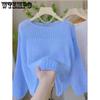 Langärmliger, ausgehöhlter Pullover, unregelmäßiges, dünnes Design, Sonnenschutz-Strickoberteil für Damen, V-Ausschnitt, lange Ärmel, locker und lässig