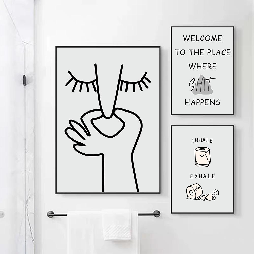 Bad Geruch Humor Badezimmer Poster Minimalist Wand Kunst Abstrakte Leinwand Malerei Druck Schwarz Weiß Bild für WC Toilette Zimmer Dekor