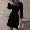 QICED Damen Frühling und Herbst Mode Temperament Stehkragen Einfarbig Samt Langarm Kleid