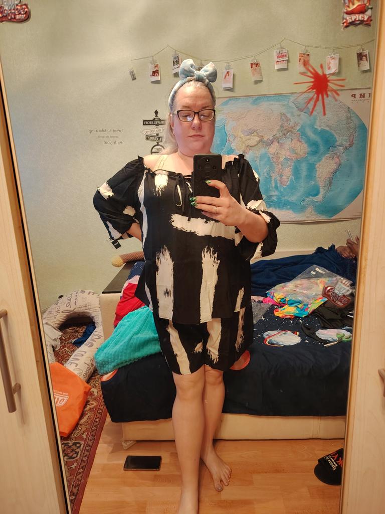 Sommeranzug für Damen in Übergröße, trägerlos, langärmlig, Oberteil mit bedruckten Shorts