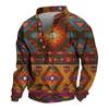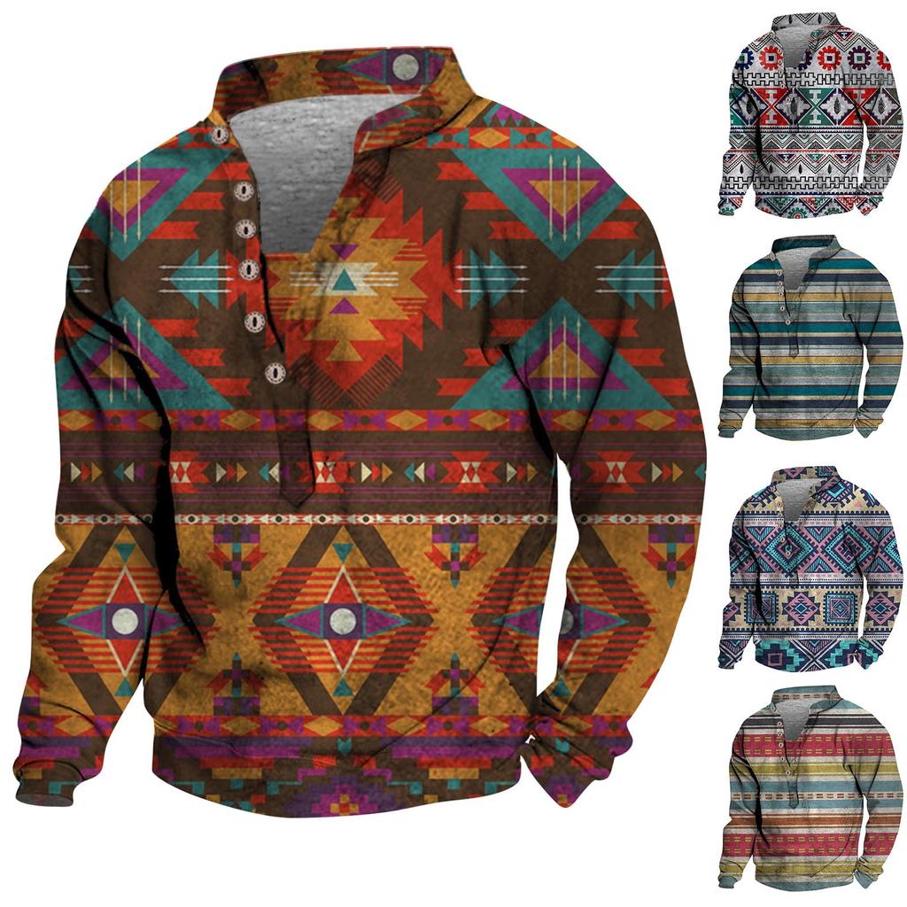 Pullover mit V-Ausschnitt für Herren, 3D-Digitaldruck, Stehkragen, 6 Knöpfe, Vintage-Kragen