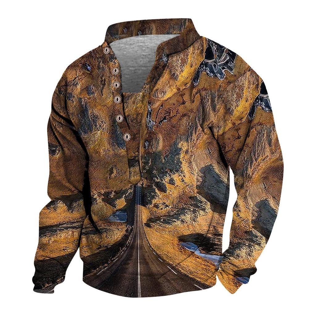 Pullover mit V-Ausschnitt für Herren, 3D-Digitaldruck, Stehkragen, 6 Knöpfe, Vintage-Kragen