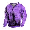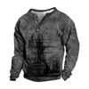 Pullover mit V-Ausschnitt für Herren, 3D-Digitaldruck, Stehkragen, 3 Knöpfe, Vintage-Kragen