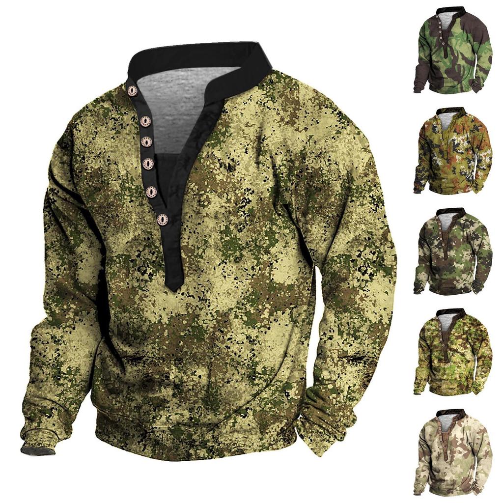 Pullover mit V-Ausschnitt für Herren, 3D-Digitaldruck, Stehkragen, 6 Knöpfe, Vintage-Kragen