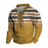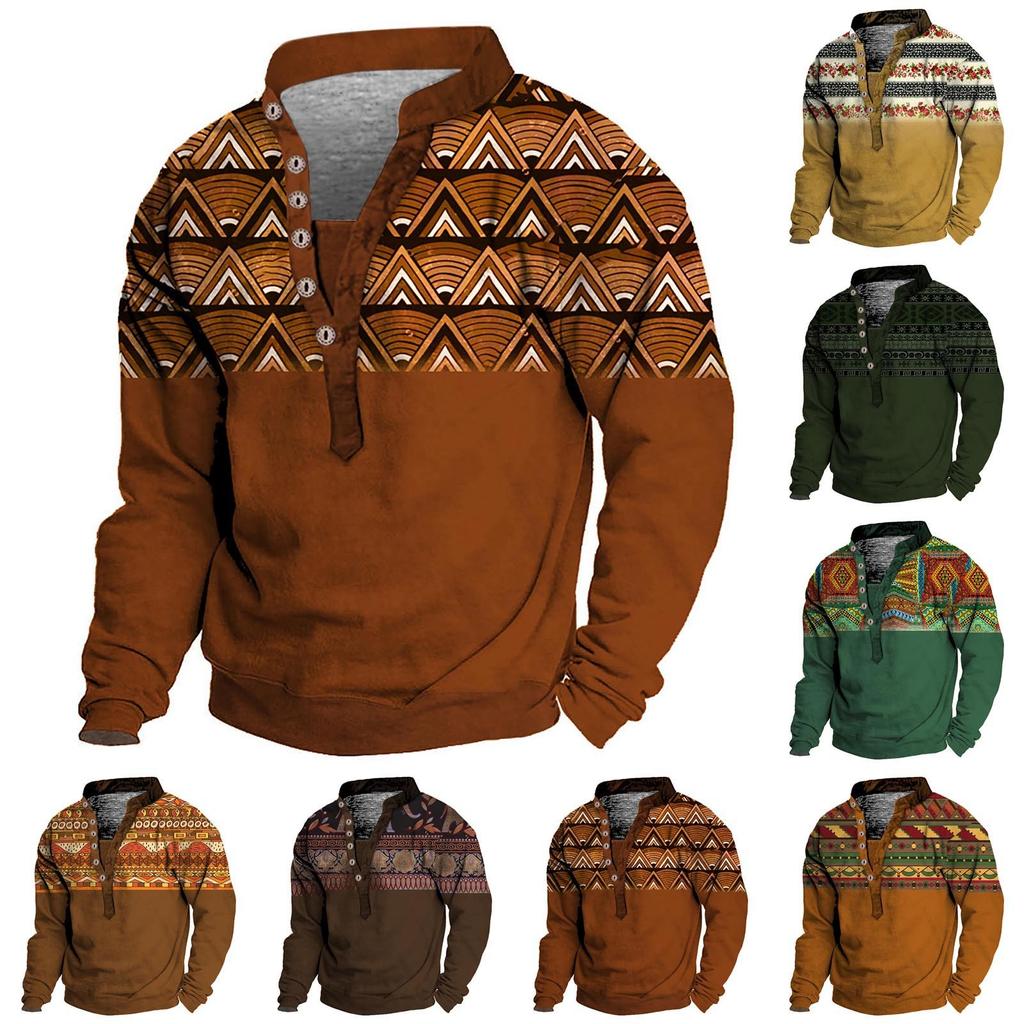 Pullover mit V-Ausschnitt für Herren, 3D-Digitaldruck, Stehkragen, 6 Knöpfe, Vintage-Kragen