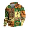 Pullover mit V-Ausschnitt für Herren, 3D-Digitaldruck, Stehkragen, 6 Knöpfe, Vintage-Kragen