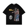 Lässiges Kurzarm-T-Shirt mit Anime-Cartoon, Unisex-Instagram-Street-Trend, locker sitzendes Sommer-T-Shirt aus reiner Baumwolle mit Viertelärmeln