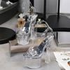 Damen Sommer 18cm High Heels 8cm Plateau Sandalen Lady Klar Extreme Block Heels Riemchensandalen Transparent Pleaser Schuhe