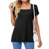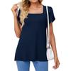 Damen Mode Freizeit Hemd Einfarbig Quadratkragen Pullover Lockeres T-Shirt