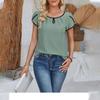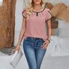 Damenmode Rundhalsausschnitt, Blütenblattärmel-Einsätze, einfarbiges Kurzarm-Oberteil