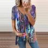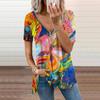 Damen Top Sommer Neue Mode Grün Seetang Gedruckt Casual Reißverschluss V-Ausschnitt Kurzarm Top