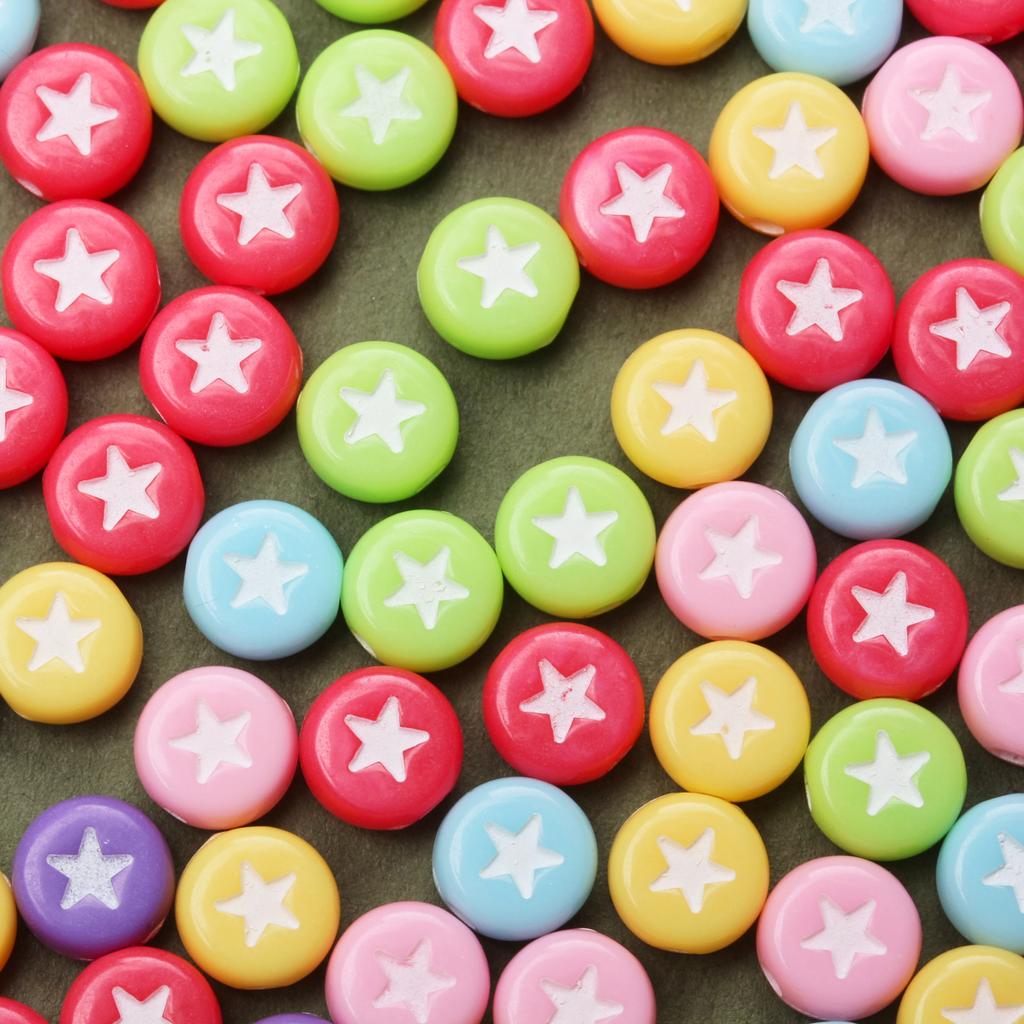 100 Stück 7mm Liebliches Sternmuster Mode Flache Runde Acryl Lose Perlen Für DIY Handgemachtes Armband Halskette Schmuck Perlenzubehör
