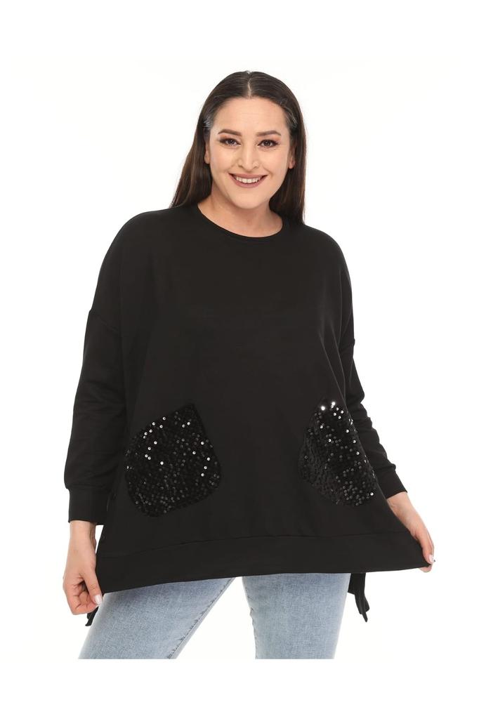 Damen Stil Übergröße Sweatshirt Zwei Faden Paillettenbesetztes Oversize Sweatshirt|Zwei Faden Buntes Taschen-Sweat. Schweißlänge: Zurück: 82-85 Cm Vorne: 71-74 cm, Modelgröße 44-46. | | Muster: locker | Material:2 Faden | Stoffart:Gestrickt | Kragentyp:Rundhalsausschnitt | Muster:Farbenfroh | Ärmeltyp:Langarm | Farbe:Schwarz | Höhe:Groß | Ärmellänge: Lang | Webart: 2-Faden gekämmte Baumwolle | Tasche:Mit Tasche | Silhouette:Übergröße ||Größe: S/M, Brust: 84–94 cm, Taille: 66–76 cm, Hüfte: 92-102cm | Zu dir: M/L, Brust: 90–100 cm, Taille: 72–82 cm, Hüfte: 98-108cm | Zu dir: L/XL, Brust: 96–106 cm, Taille: 78–88 cm, Hüfte: 104-114cm | Zu dir: XL/2XL, Brust: 102–112 cm, Taille: 84–94 cm, Hüfte: 110-120cm | Zu dir: 2XL/3XL, Brust: 108-116cm, Taille: 90–98 cm, Hüfte: 116-126cm | Zu dir: 3XL/4XL, Brust: 112-122 cm, Taille: 94–104 cm, Hüfte: 122-132cm | Zu dir: 4XL/5XL, Brust: 118–128 cm, Taille: 100–110 cm, Hüfte: 128-138cm | Zu dir: 5XL/6XL, Brust: 124–134 cm, Taille: 106–116 cm, Hüfte: 134-144cm | Zu dir: 6XL/7XL, Brust: 130–140 cm, Taille: 112–122 cm, Hüfte: 140-150cm | Zu dir: 7XL/8XL, Brust: 136–146 cm, Taille: 118–128 cm, Hüfte: 146-156cm | Zu dir: 8XL/9XL, Brust: 142–152 cm, Taille: 124–134 cm, Hüfte: 152-162cm | Zu dir: 9XL/10XL, Brust: 148–158 cm, Taille: 130–140 cm, Hüfte: 158-168cm | Zu dir: 10XL/11XL, Brust: 154–164 cm, Taille: 136–146 cm, Hüfte: 164-174cm | Zu dir: 11XL/12XL, Brust: 160–170 cm, Taille: 142–152 cm, Hüfte: 170-180cm | Zu dir: 12XL/13XL, Brust: 166–176 cm, Taille: 148–158 cm, Hüfte: 176-186cm | Zu dir: 13XL/14XL, Brust: 172–182 cm, Taille: 154–164 cm, Hüfte: 182-192cm | Zu dir: 14XL/15XL, Brust: 178–188 cm, Taille: 160–170 cm, Hüfte: 188–198 cm
