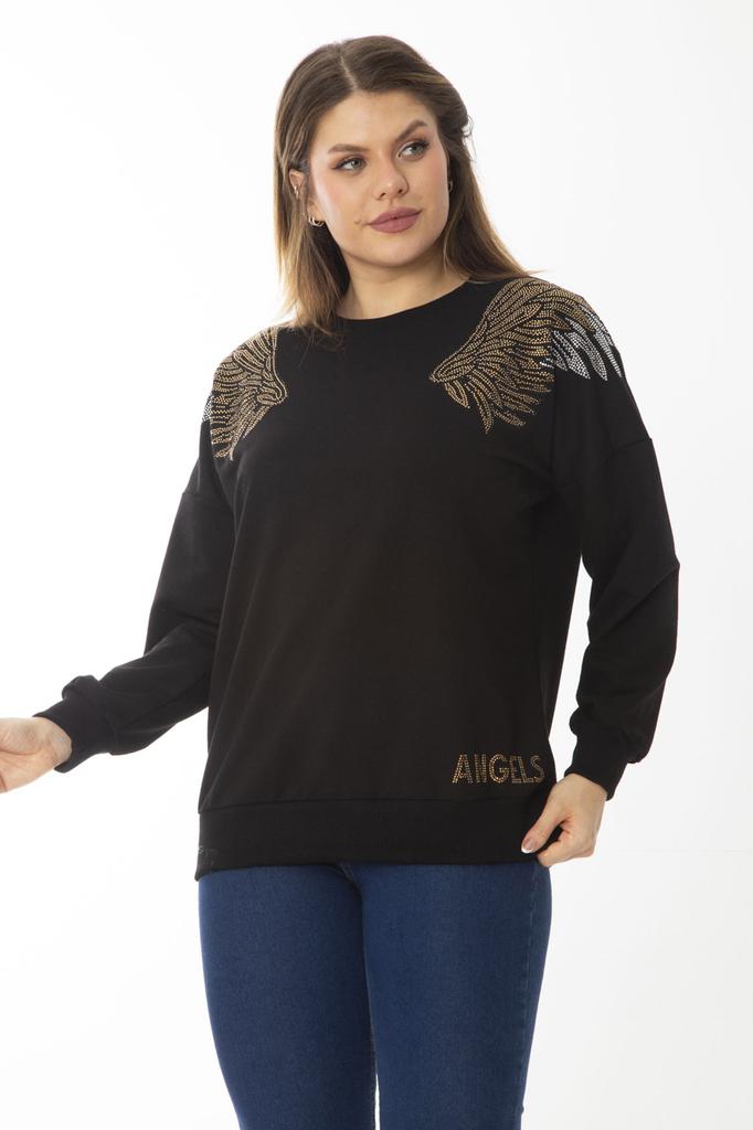 Women's Style Big Size Sweatshirt Large Size Black Stone Detailed Sweatshirt|95% Viscose 5% Elastane-Product Length: 67cm. | | Pattern:Regular | Pattern:Plain | Fabric Type:Woven | Colour:Black | Collar Type:Crew Neck | Handle Type:Standard Handle | Environment:Casual | Height:Regular | Sleeve Length: Long | Pocket:No pocket | Material Component:95% Viscose, 5% Elastane | Washing Instruction:Type 1 | Silhouette|Size: S, Chest: 84-88cm, Waist: 66-70cm, Hips: 92-96cm | Size: M, Chest: 90-94cm, Waist: 72-76cm, Hips: 98-102cm | Size: L, Chest: 96-100cm, Waist: 78-82cm, Hips: 104-108cm | Size: XL, Chest: 102-106cm, Waist: 84-88cm, Hips: 110-114cm | Size: 2XL, Chest: 108-112cm, Waist: 90-94cm, Hips: 116-120cm | Size: 3XL, Chest: 112-116cm, Waist: 94-98cm, Hips: 122-126cm | Size: 4XL, Chest: 118-122cm, Waist: 100-104cm, Hips: 128-132cm | Size: 5XL, Chest: 124-128cm, Waist: 106-110cm, Hips: 134-138cm | Size: 6XL, Chest: 130-134cm, Waist: 112-116cm, Hips: 140-144cm | Size: 7XL, Chest: 136-140cm, Waist: 118-122cm, Hips: 146-150cm | Size: 8XL, Chest: 142-146cm, Waist: 124-128cm, Hips: 152-156cm | Size: 9XL, Chest: 148-152cm, Waist: 130-134cm, Hips: 158-162cm | Size: 10XL, Chest: 154-158cm, Waist: 136-140cm, Hips: 164-168cm | Size: 11XL, Chest: 160-164cm, Waist: 142-146cm, Hips: 170-174cm | Size: 12XL, Chest: 166-170cm, Waist: 148-152cm, Hips: 176-180cm | Size: 13XL, Chest: 172-176cm, Waist: 154-158cm, Hips: 182-186cm | Size: 14XL, Chest: 178-182cm, Waist: 160-164cm, Hips: 188-192cm | Size: 15XL, Chest: 184-188cm, Waist: 166-170cm, Hips: 194-198cm