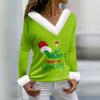 Damen T-Shirt Weihnachten Langarmshirt Party Weihnachten Fleecekragen V-Ausschnitt Top