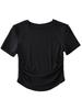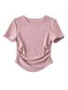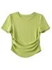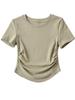 2024 Harajuku Damen Rundhals Kurzarm Baumwoll-T-Shirt mit gerüschten Seitendetails T-Shirts