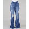 Frühling und Herbst Damenmode hochelastische perforierte Jeans hohe Taille Schlaghose