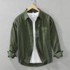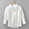 Frühling und Sommer 100 Baumwolle Langarm Herrenhemd Täglich Vielseitiges Freizeit-Oberteil Einfarbiges Hemd mit Tasche Schlichter Stil Herrenbekleidung