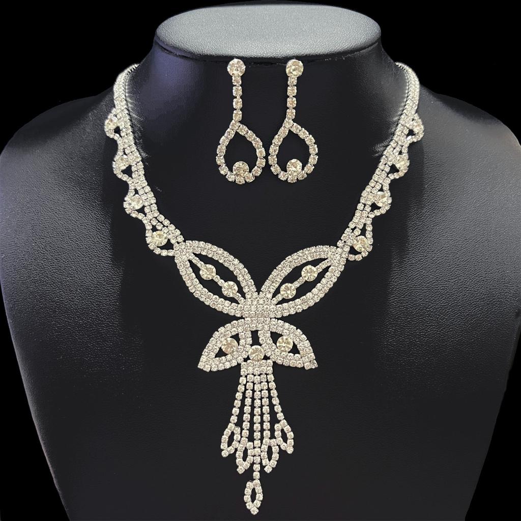 Voll Diamant Hohl Großer Schmetterling Halskette Ohrringe Set Hochzeitskleid Mode Persönlichkeit Damen Halskette Brautschmuck