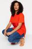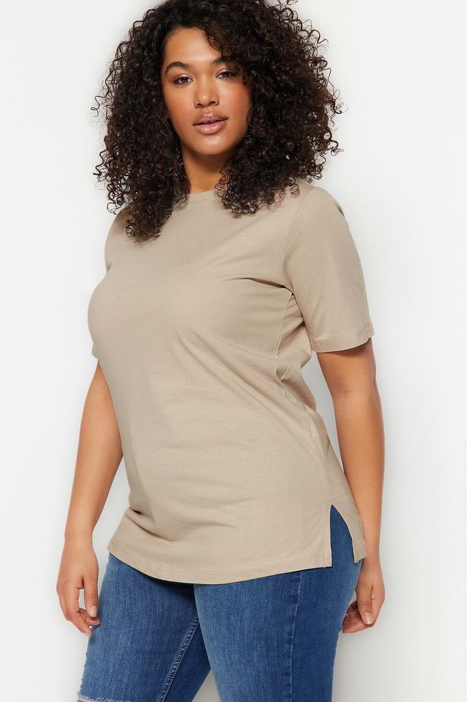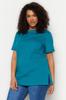 Damen Stil Übergröße Nerz Petrol Boyfriend Rundhals Schlitz Strick T-Shirt