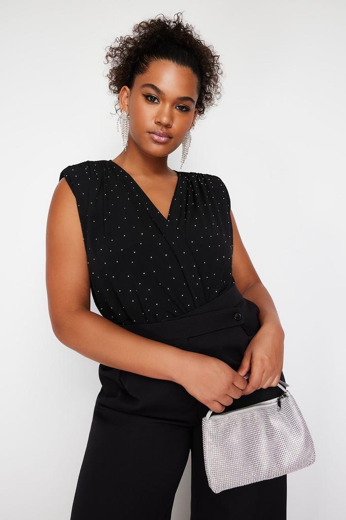 Damen Stil Übergröße Gestrickter Body mit Schwarzem Stein Detail