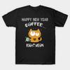 Schwarzes T-Shirt mit Aufdruck für Herren, supergroß, mit Aufdruck „Happy New Year Right Meow Coffee T-Shirt“, ohne Schnitt, Transferpapier-Aufdruck, Baumwoll-T-Shirt