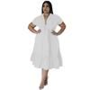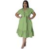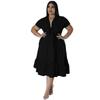 Übergröße Damen Einfarbiges Halbcardigan-Oberteil mit Revers Stilvolles Rüschenkleid mit Krawatte
