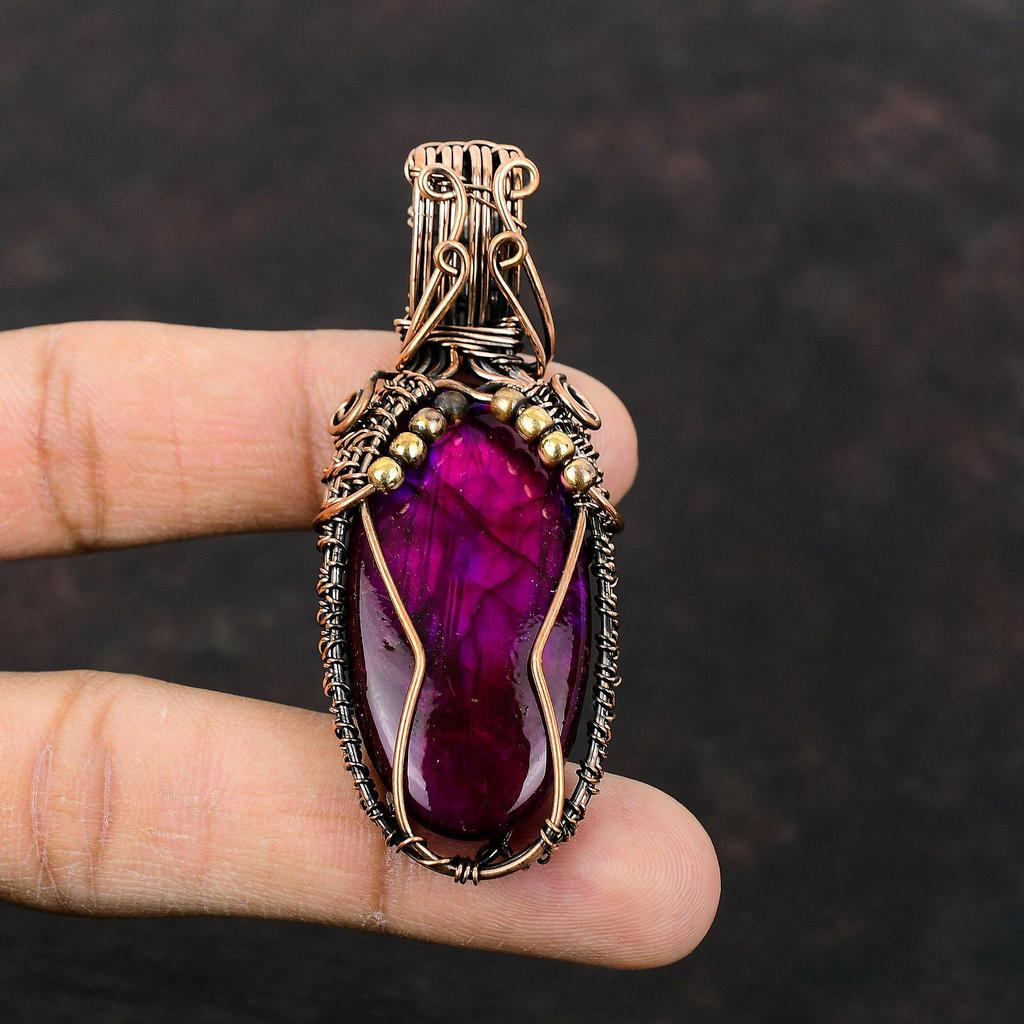 Lila Feuer Labradorit Anhänger Kupferdraht umwickelter Anhänger Handgefertigter Stilvoller Anhänger Kupferschmuck Zum Geschenk Drahtumwickelter Edelsteinschmuck