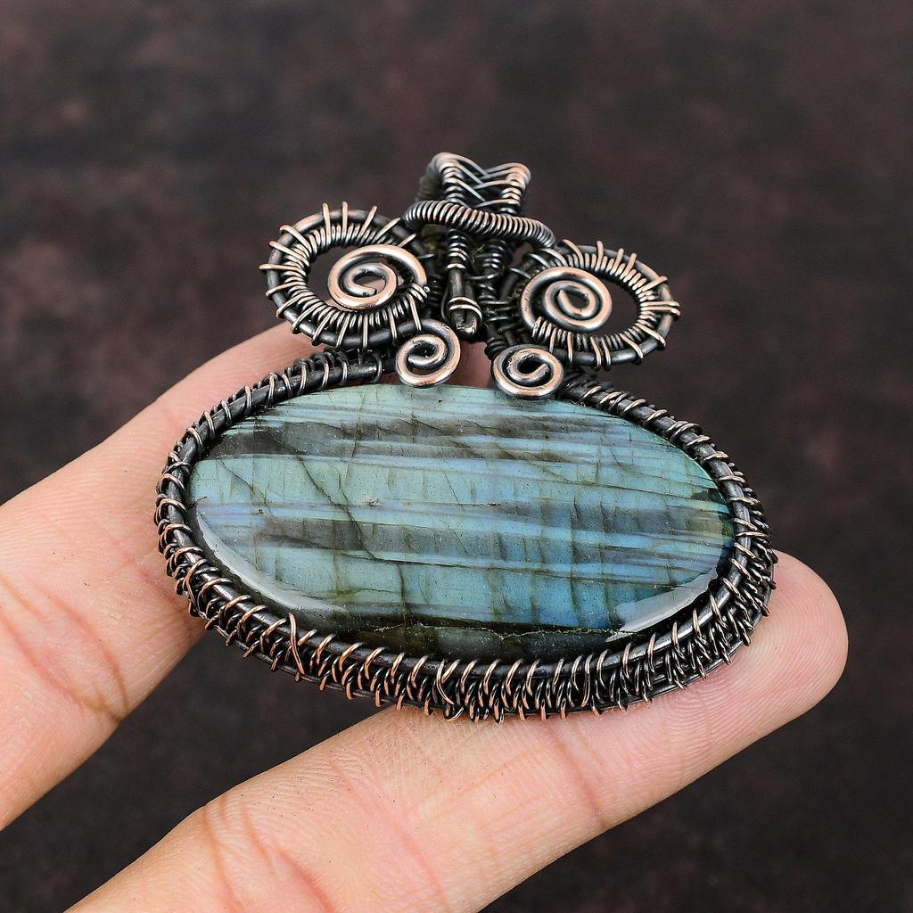 Labradorit Natur Edelstein Anhänger Kupferdraht gewickelter Schmuck Handgefertigter Anhänger Kupferanhänger Labradorit Schmuck Zum Geschenk Heilstein