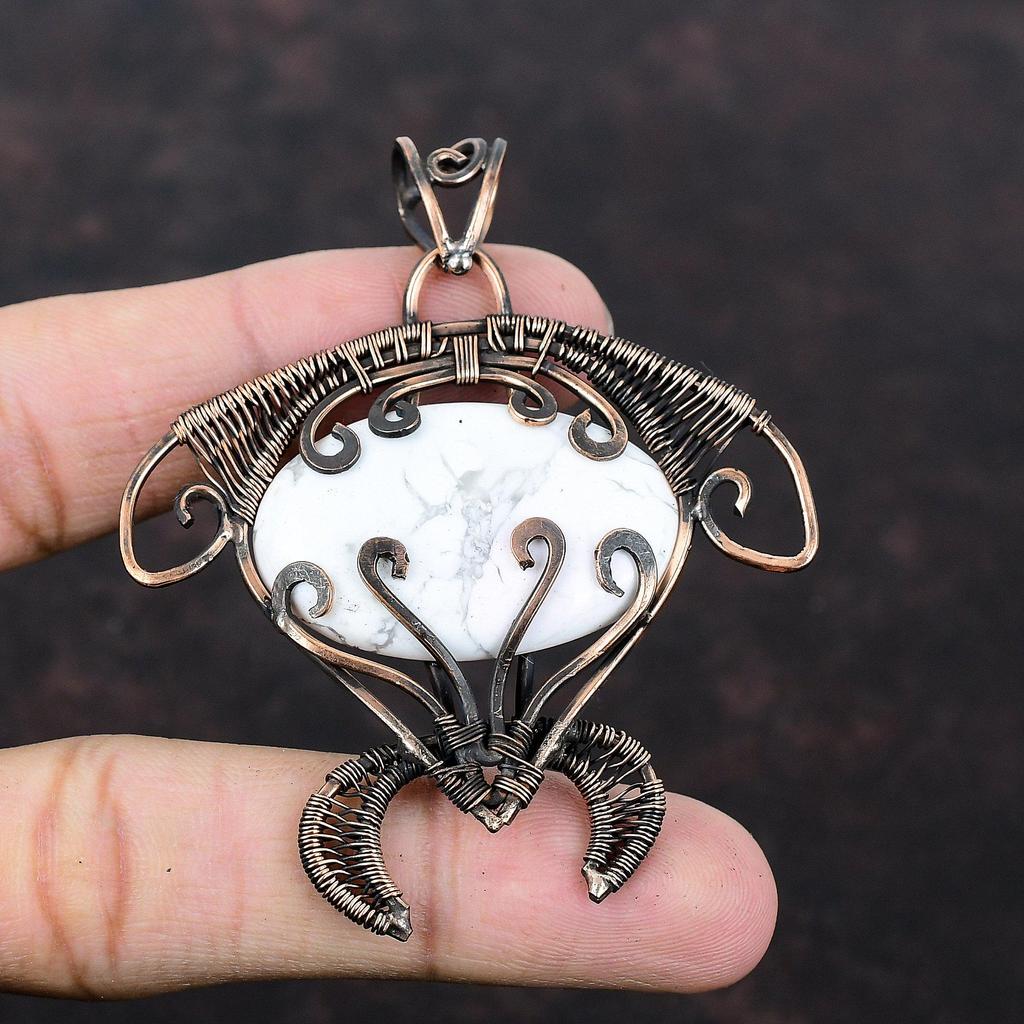 Howlite Copper Pendant Copper Wire Wrapped Jewelry Real Gemstone Pendant Tortoise Pendant Handmade Jewelry Wire Wrapped Pendant Gift For Her