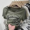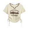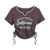 Kordelzug Y2k T Shirt Frauen Brief Crop Top Americal Retro Kurzarm T-stücke Koreanische Grafik Schlank Sommer T-shirts 2000s kleidung