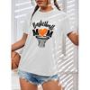 Plus Size Women Summer Green Hollow Letter Printed Comfy Short Sleeve Round Collar T-shirt Casual Baggy Mid Length Tee Tops
