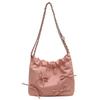 Women Stylish Commuting Bag Large Capacity PU Bow Shoulder Bag Pleated Crossbody Bag Solid Color Hasp Closure for Outdoor Travel